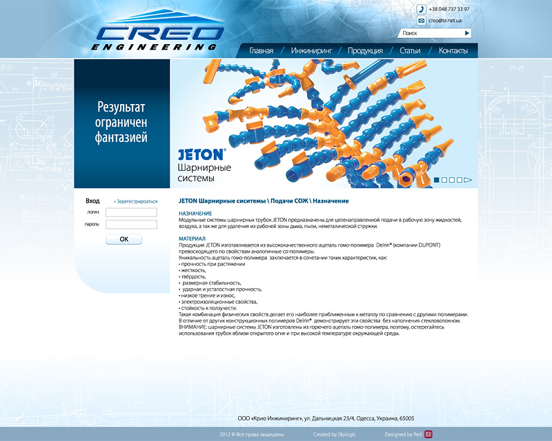 Крио Инжиниринг Дизайн веб-сайта компании Крео Инжиниринг, 2012 |