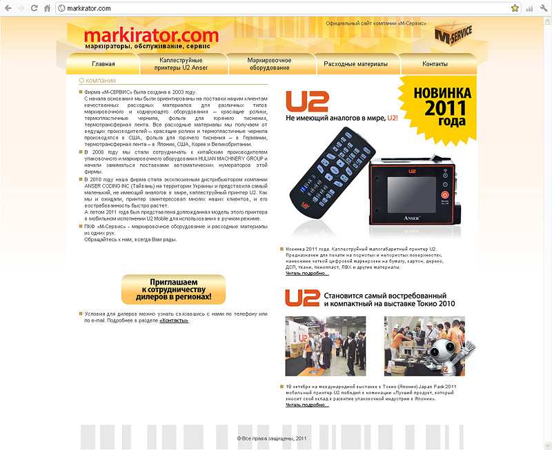Маркиратор Создание веб-сайта компании "М-Сервис", 2012 http://markirator.com |