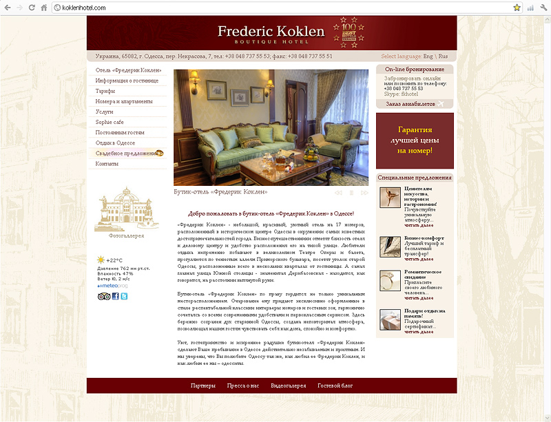 Фредерик Коклен Редизайн и последующее обновление сайта отеля "Фредерик Коклен" http://koklenhotel.com |