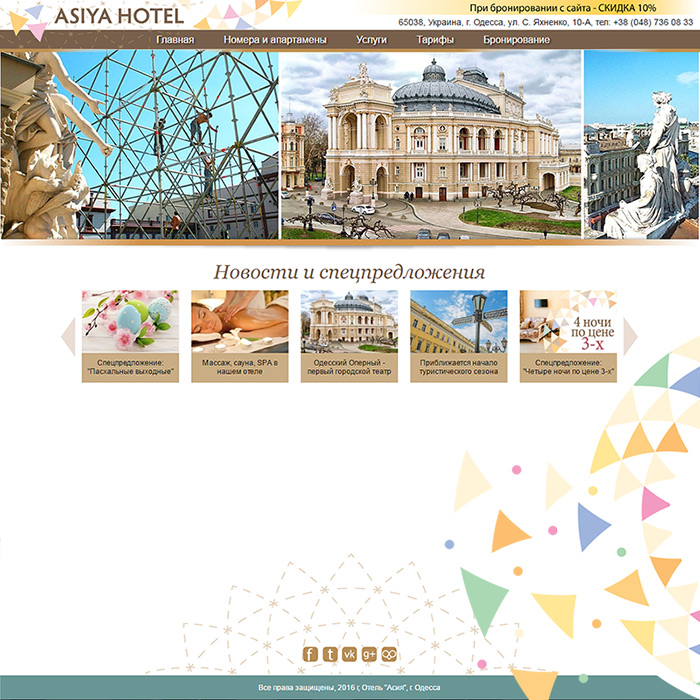 Отель Асия Разработка веб-сайта для мини-отеля "Асия" http://asiyahotel.com |