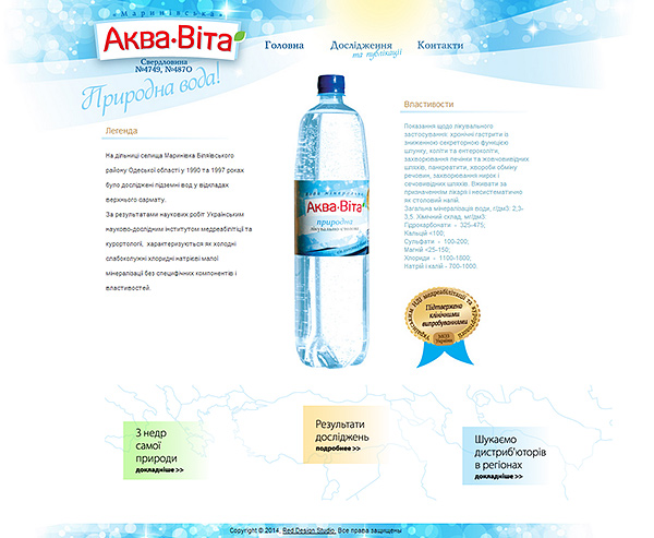 Аква-Вита Разработка веб-сайта для производителя минеральной воды "Аква-Вита", 2014 http://aquavitalux.com.ua |