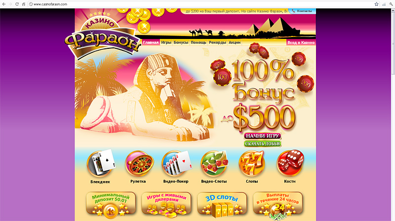 Фараон Дизайн для игрового портала "Казино Фараон" http://casinofaraon.com |