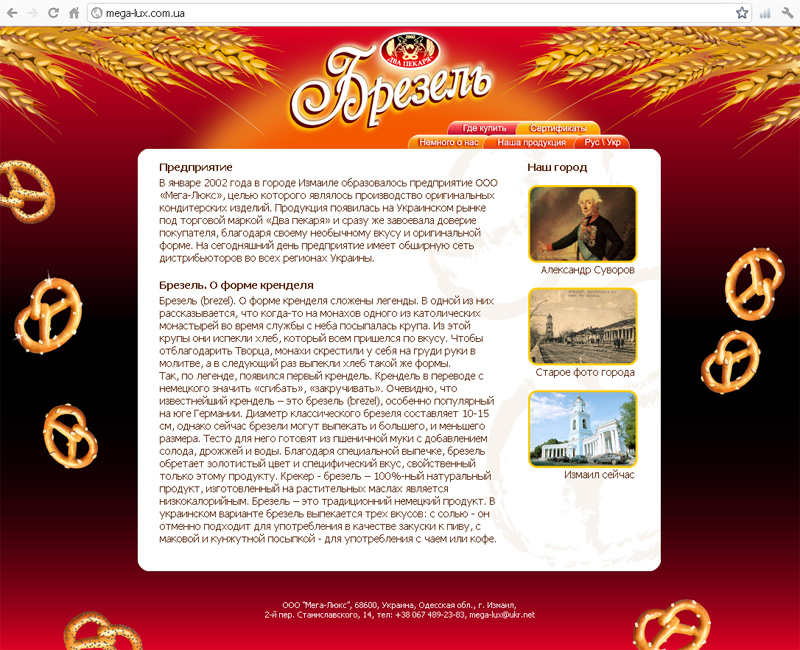 Брезель Разработка информационного веб-сайта о продукции предприятия ТМ "Брезель" http://mega-lux.com.ua |